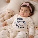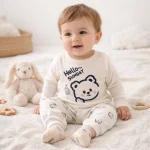 پارچه ست بلوز شلوار نوزادی کبریتی طرح تدی، فوق العاده نرم و باکیفیت بوده و در برابر شستشو بسیار مقاوم میباشد.
